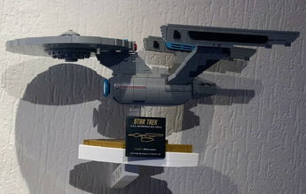 Ce support mural est spécialement conçu pour exposer vos modèles BlueBrixx Star Trek de manière organisée et visuellement attrayante. Il offre une solution idéale pour présenter votre collection de kits de construction, y compris des vaisseaux emblématiques tels que l'USS Enterprise (par exemple, NCC-1701) et le Klingon Bird of Prey, ainsi que les vaisseaux Borg. Le support mural est conçu pour assurer un montage sûr de vos modèles, garantissant qu'ils restent stables sur le mur.