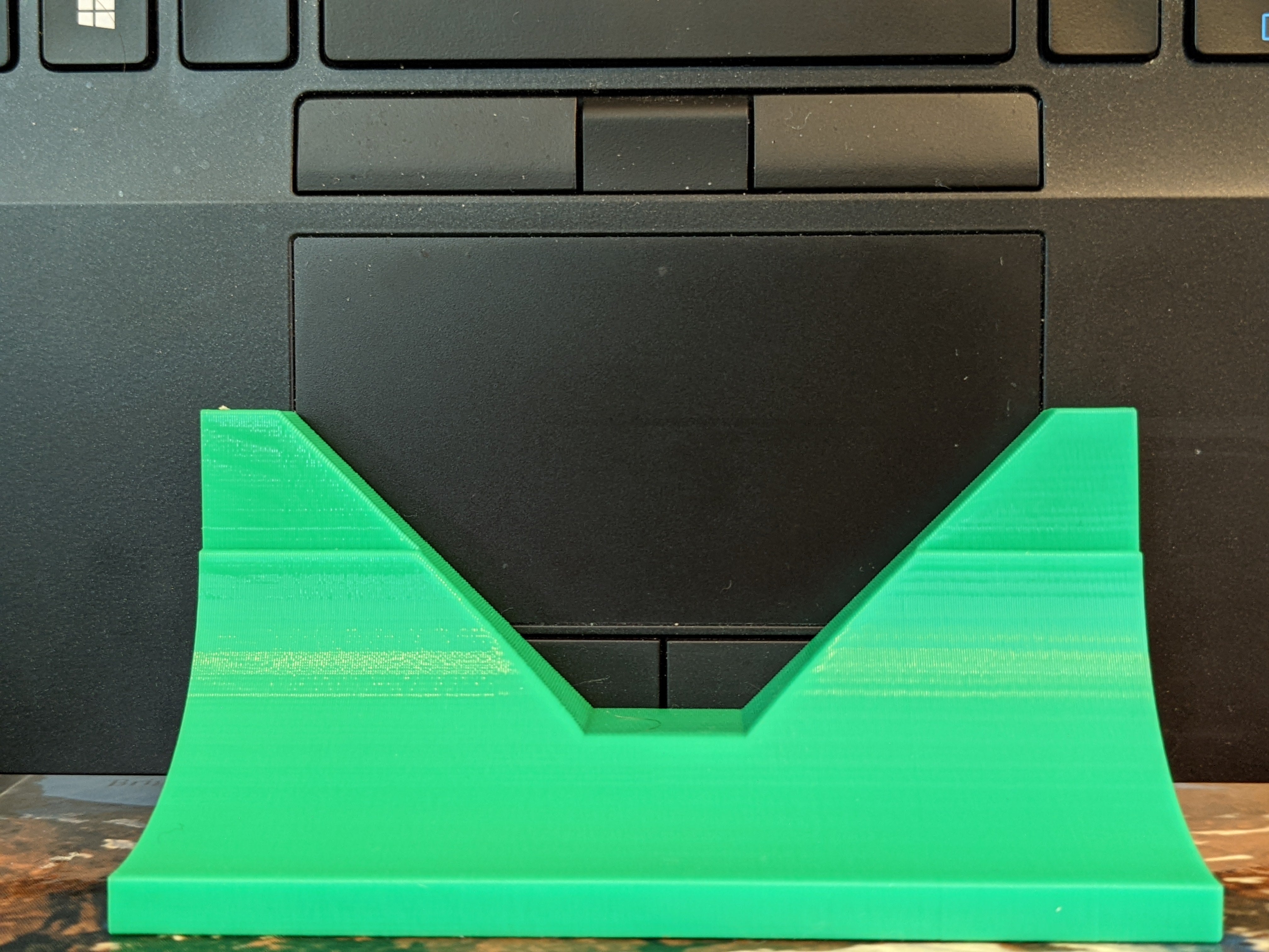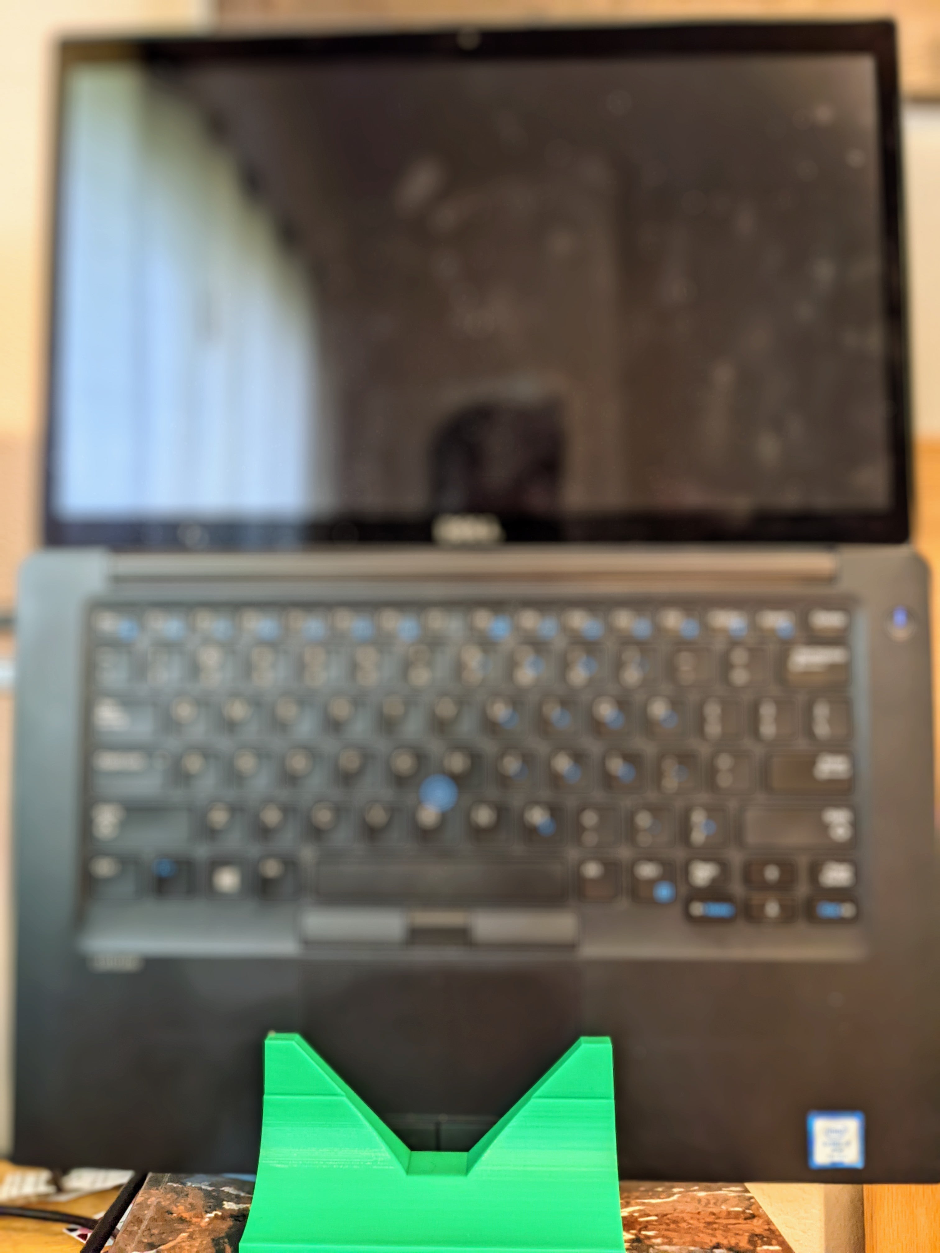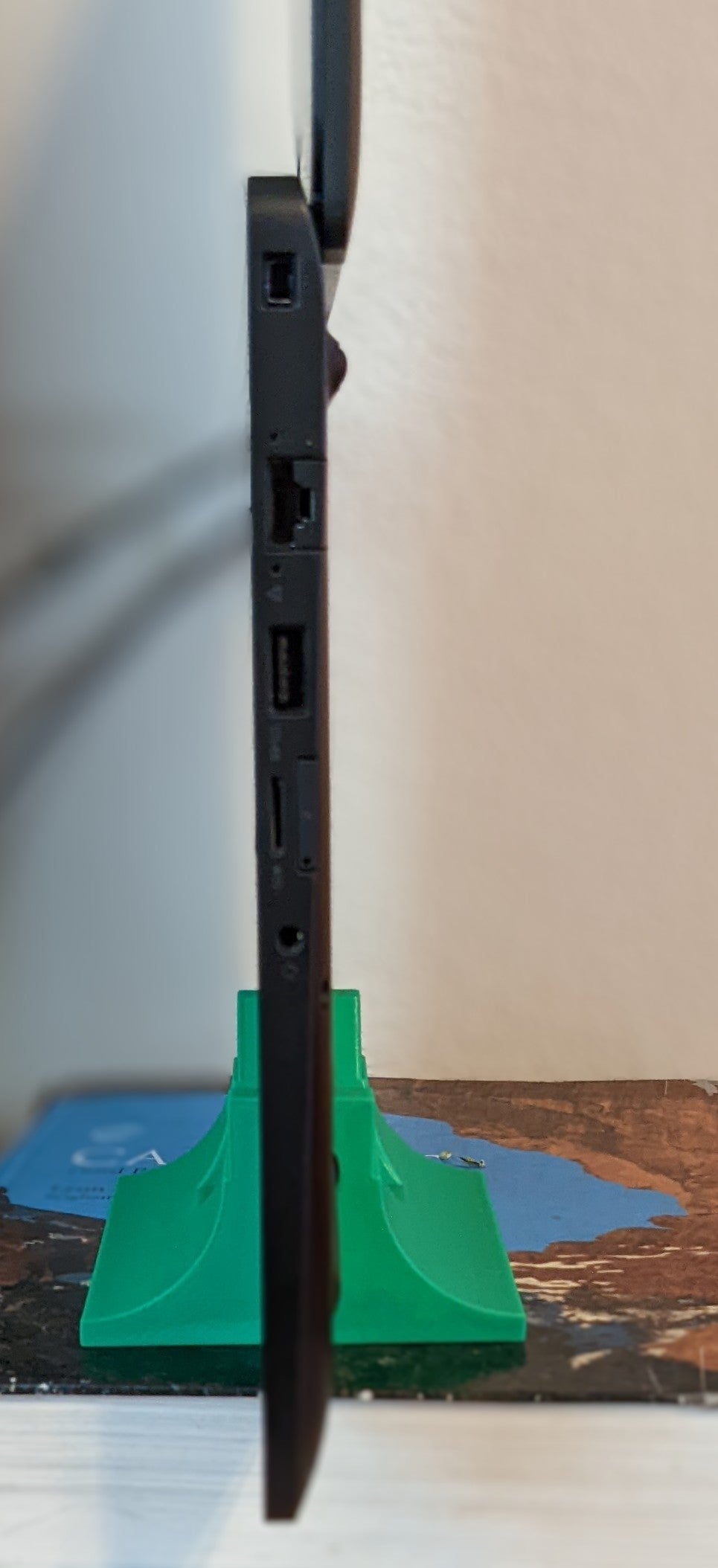 Il s'agit d'un support pour ordinateur portable qui permet de tenir l'ordinateur portable Dell Latitude 7480 (~2018) à la verticale avec l'écran ouvert à 180 degrés. Le support se fixe par le bas ou s'enfonce par le côté. Ce positionnement de l'écran rend le travail plus ergonomique lors de l'utilisation d'un clavier et d'une souris externes. Notez qu'il y a un canal pour l'élastique. Il doit être parfaitement ajusté : bien ajusté sans être serré. Pour le retirer, poussez-le des deux côtés.