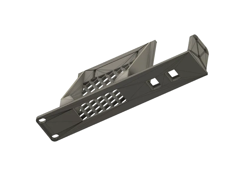 Dette beslag gør det muligt at montere din Unifi Express i et standard 19-tommer rack. Det har en indbygget keystone-åbning til nem kabelstyring og afrundede hjørner for et rent udseende. Løsningen sikrer en stabil installation og organiseret opsætning af dit netværksudstyr i et rack kabinet.